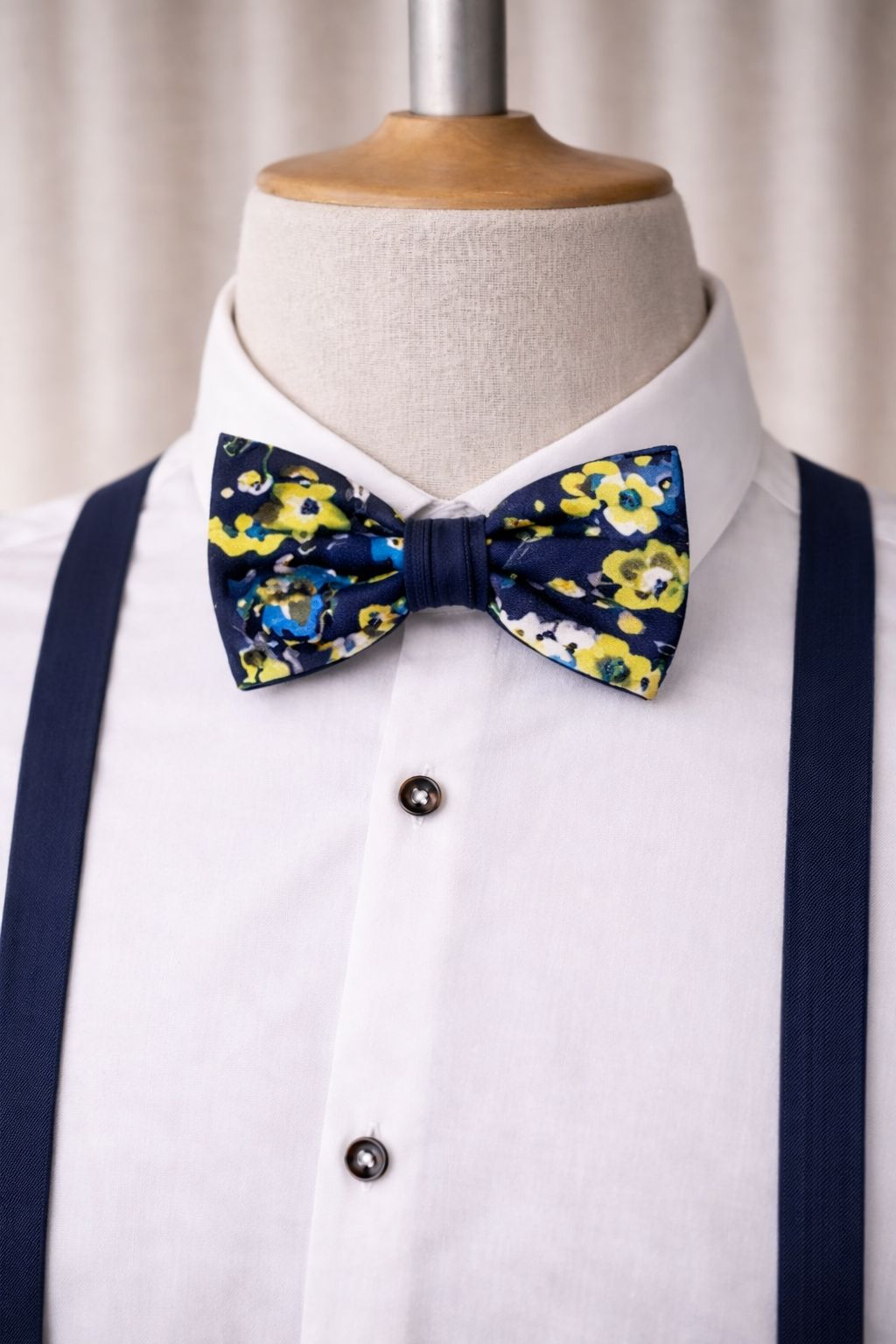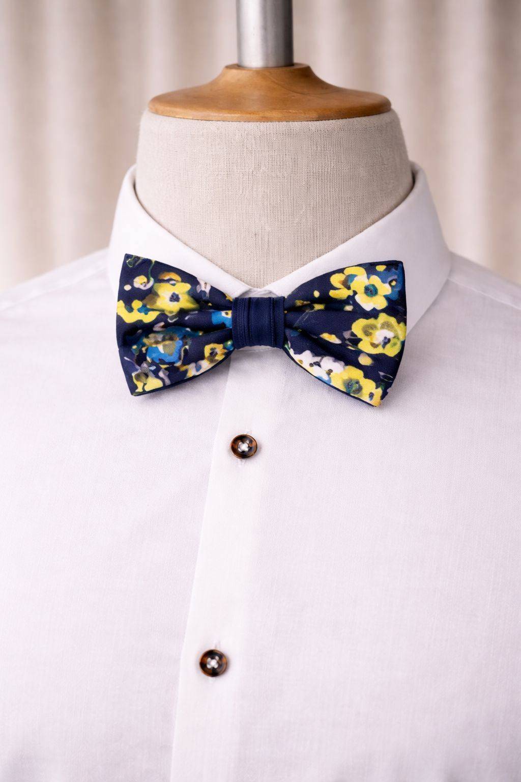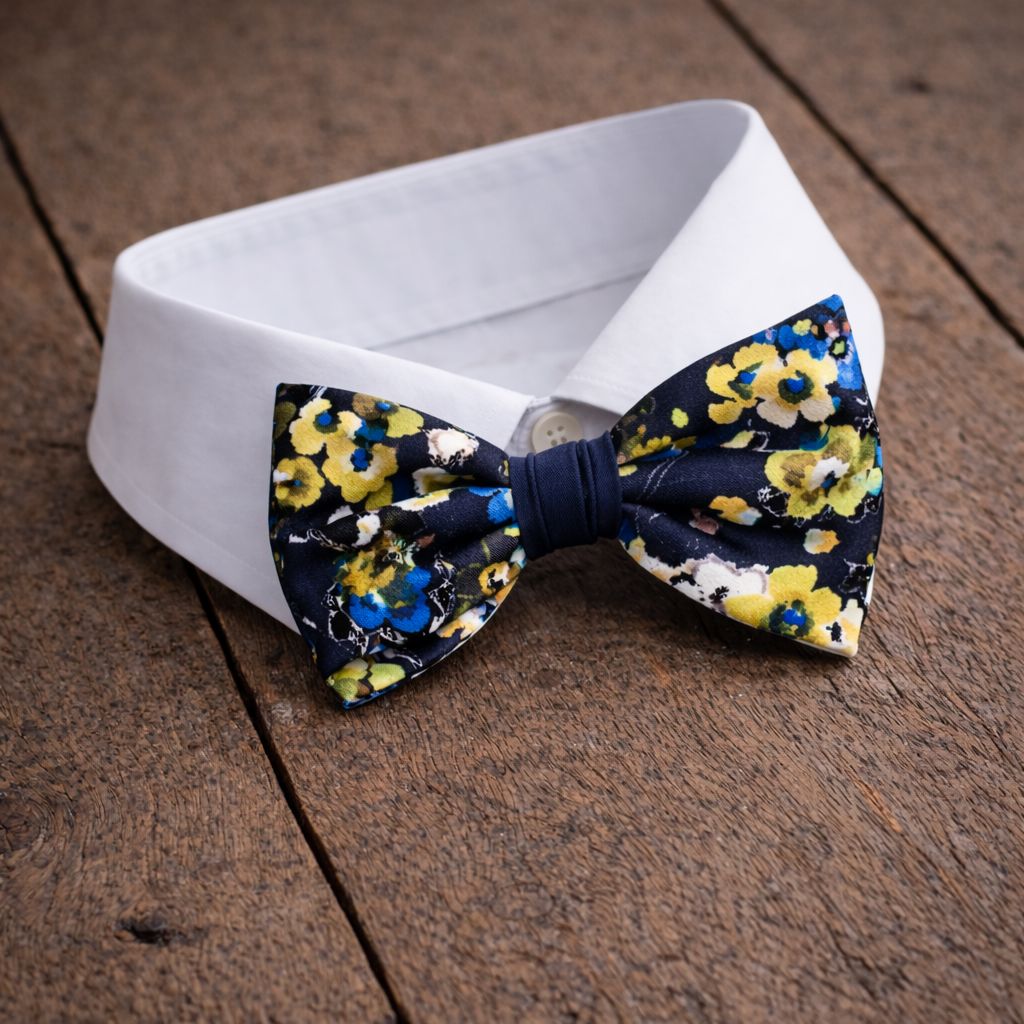Fliege aus 100% Seide - dunkelblau/gelb/hellblau