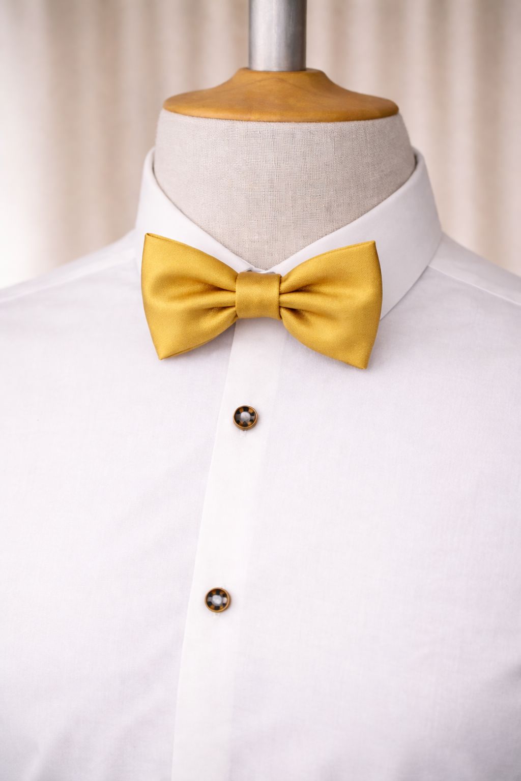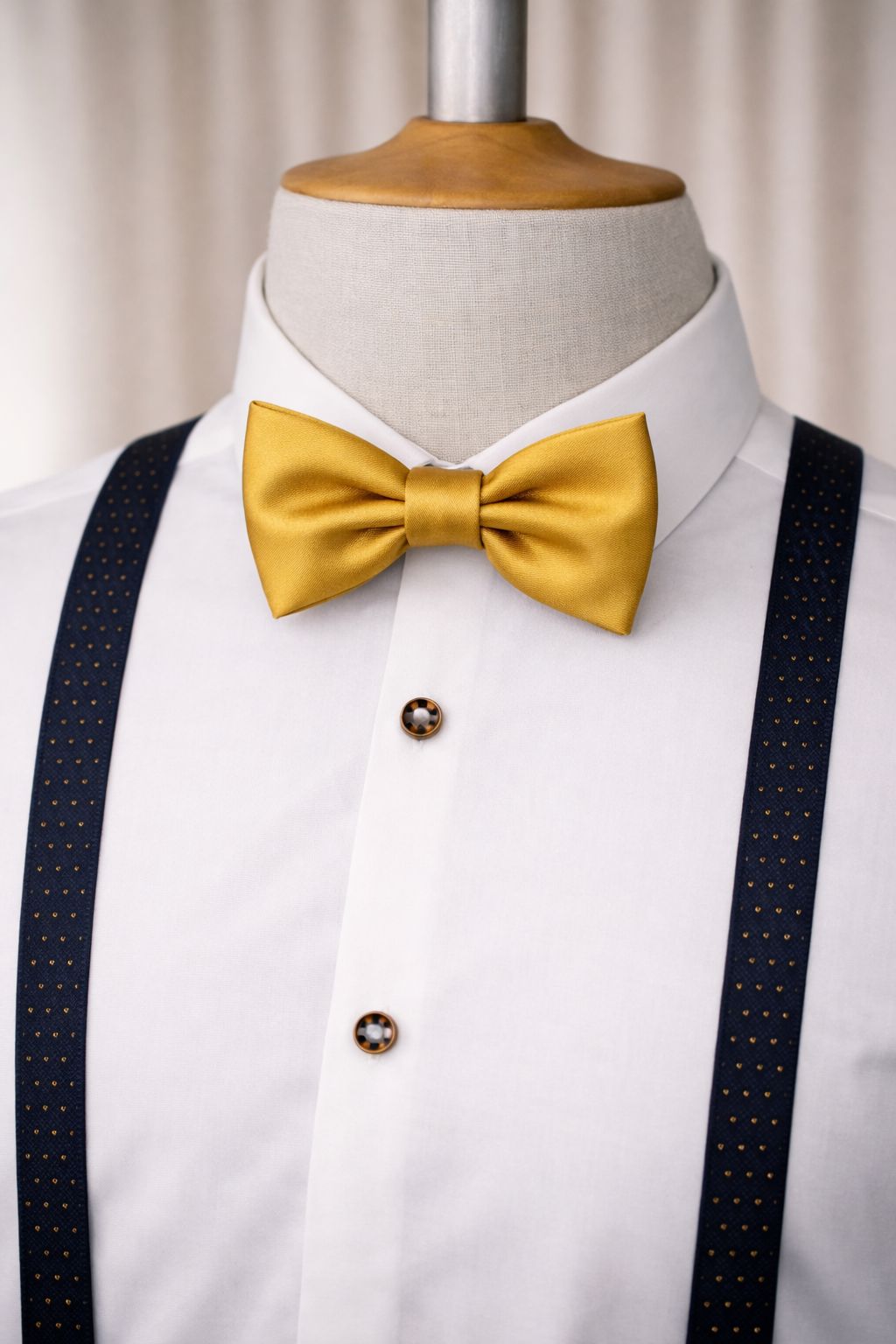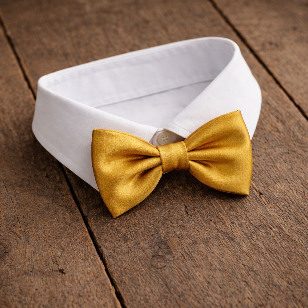 The bow tie has an elegant grosgrain ribbon and is adjustable in length.