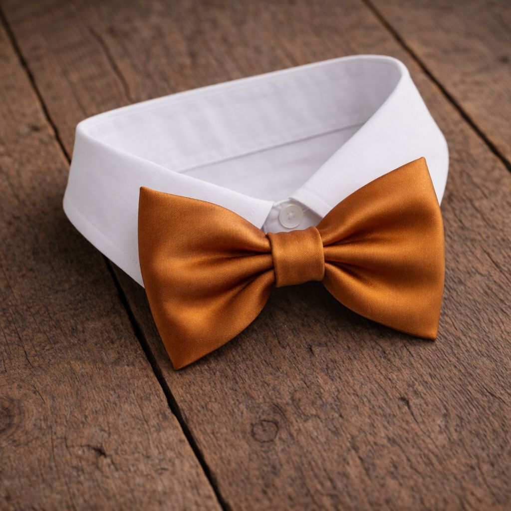 Noeud papillon 100% soie - cognac/brillant - pochette de costume assortie ET32